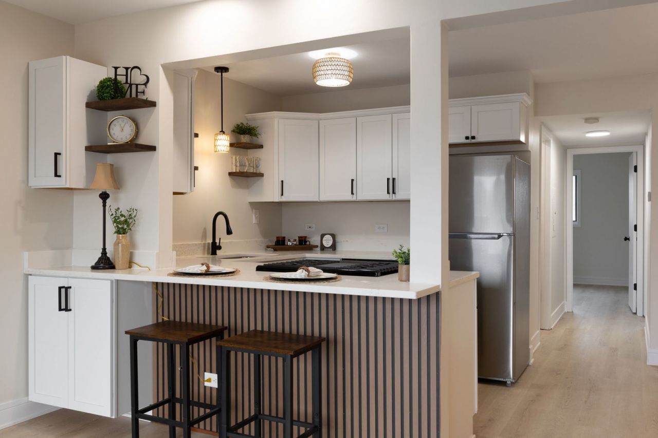 Newly renovated and updated throughout. Bright, warm and welcoming tastefully styled and completely move in ready 2 bedroom, 1 bathroom condo with front and rear entry. Features include modern, open concept updated kitchen with crown molding trimmed white shaker cabinets, breakfast bar, quartz counters, stainless steel appliances. Spacious living/dining/kitchen; breakfast bar features additional cabinetry and counter space along with accented fluted panel breakfast bar wall; large living room features access to private balcony. Two sizable bedrooms, updated bathroom with new wood vanity, toilet, white tub, lighting and hardware. Primary bedroom wired for ceiling fixture; both bedroom closets with auto motion sensing lights; laundry and furnace closets with auto motion sensing lights w/ remote for additional lighting features. New LVT hard surface flooring throughout; fresh neutral paint (walls, ceilings, trim, doors), white trim and doors; new lighting, door hardware, kitchen and bath hardware. New hot water heater; laundry closet with gas and water laundry machine hook ups. Designated private storage closet right outside rear unit door. One car parking space in shared two car garage and plenty of guest (with HOA/management provided temporary tag) and street parking. Ideal location for public transportation, shopping & dining. 3 miles to Crestwood shopping area featuring Kohl's, Target, At Home, Petsmart, Aldi, AMC Theater, Menard's, Walmart and much more; many dining options - dine in or carry out. 4 miles to medical center - 5 miles to Oak Lawn Metra - 2 miles to I294 - 3 miles to I57 - 9.5 miles to Midway Airport. Close proximity to area parks and amenities. NO RENTALS OR PETS ALLOWED, Monthly HOA includes water!