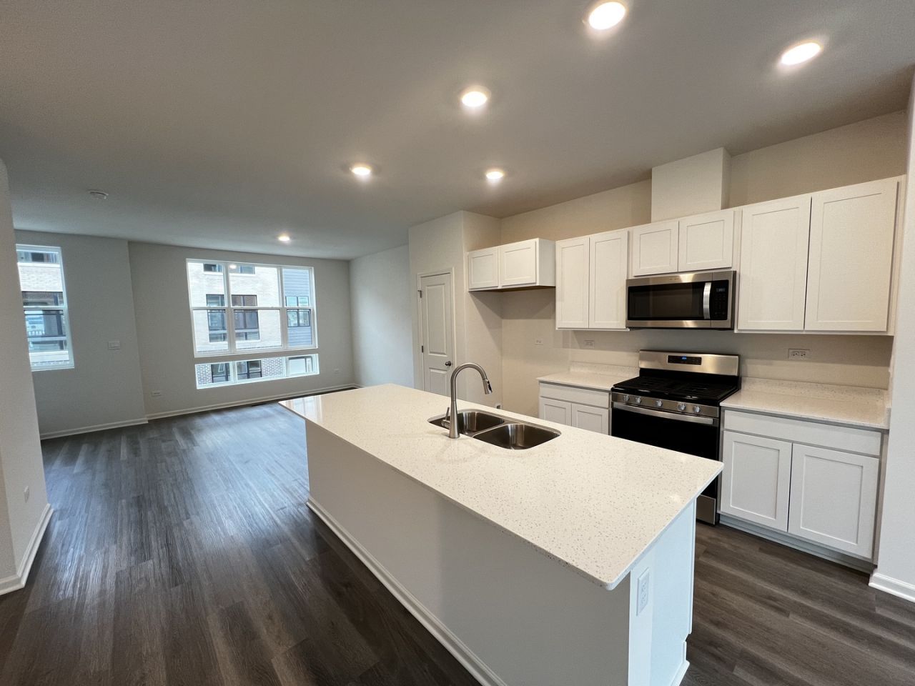 Welcome to at 396 Summit Circle in Lombard, IL this townhome located in the prestigious Summit at Yorktown community. This townhome will be ready for a Spring move-in! Enjoy low maintenance living, including snow removal, lawn care and exterior maintenance, allowing you more time to relax and enjoy your surroundings The Grant floor plan offers 1,827 sq ft of comfortable living space featuring 3 bedrooms, 2.5 baths, and a finished flex space. As soon as you step inside, you'll be greeted by the finished flex space, perfect for a home office or additional living area. Walking up the stairs, you will find this home's open concept living space and oversized windows. The expansive kitchen overlooks both the front dining and back great room areas, making it the ideal space to entertain. Additionally, your kitchen features designer soft-close cabinetry, a spacious island with quartz countertops, and pantry. Enjoy your large primary bedroom with a walk-in closet and connecting en suite bathroom. The rest of the upper level features a laundry room, secondary bedrooms with a full second bath, and linen closet. You'll find luxury vinyl plank flooring in the kitchen and dining areas on the main level living space, bathrooms, and laundry. This home is equipped with an innovative ERV furnace system and a tankless water heater, adding to the multitude of impressive features and quality 2x6 construction with Hardie board siding. The townhomes also features a convenient 2-car garage with a rough-in for an EV charger and a 2-car driveway, providing ample parking space for residents and guests. All Chicago homes include our America's Smart Home Technology, featuring a smart video doorbell, smart Honeywell thermostat, smart door lock, Deako smart light switches, WiFi Garage Door Opener with camera and more. Photos are of a similar home and model home. Actual home build may vary.